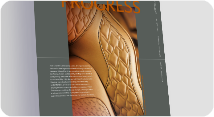 STRATEGIC REPORT OUR STRATEGIC PILLARS CONTINUED S 3. Our promise, Racing. Green. S TR TR A A TE TE G G I I C C R R E E P P O O R R T T PROGRESS G G O O VE VE R R NAN NAN C C E E F F I I NAN NAN C C IAL IAL S S T T A A T T E E M M E E N N T T S S F F U U R R T T H Aston Martin is embracing a new, driving ambition: to H E E R be a world-leading sustainable ultra-luxury automotive R INF business. A key pillar of our overall corporate strategy, INF OR the Racing. Green. sustainability strategy is built on five S OR M core priority areas that reflect Aston Martin’s approach S M A E A T to sustainability. Fully aligned with the UN’s Sustainable R T I I ON Development Goals, our strategy reflects a deep G ON O understanding of the priorities that our customers, R employees and wider stakeholders care about. These R P U five areas are tackling climate change; creating a better R O E environment; investing in people and opportunity; W exporting success; and delivering the highest standards. O L P L I T W A H S T E L P I C N I R P ASTON MARTIN LAGONDA ANNUAL REPORT AND ACCOUNTS 2023 09
