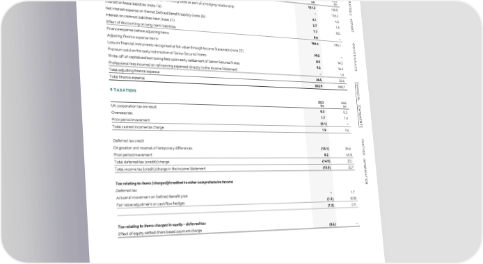 NOTES TO THE FINANCIAL STATEMENTS CONTINUED S S 6 STAFF COSTS AND DIRECTORS’ EMOLUMENTS TR8 FINANCE EXPENSE TR (a) Staff costs (including Directors) A 2023 2022 A 2023 2022 TE £m £m TE £m £m G Bank loans, overdrafts and senior secured notes 151.3 166.0 G I I C C Wages and salaries 188.0 139.4 RForeign exchange loss on borrowings not designated as part of a hedging relationship – 156.2 R E E Social security costs 19.4 16.4 PInterest on lease liabilities (note 16) 4.1 4.5 P 1O O Expenses related to post-employment Defined Benefit plan – 16.0 RNet interest expense on the net Defined Benefit liability (note 26) 2.7 1.4 R Contributions to Defined Contribution plans 20.9 17.6 TInterest on contract liabilities held (note 21) 7.7 8.0 T 228.3 189.4 Effect of discounting on long-term liabilities 0.6 – G G 1. The year ended 31 December 2022 includes Defined Benefit plan closure costs of £12.5m as separately described in note 5 alongside the total in-year service costs of £3.5m separately OFinance expense before adjusting items 166.4 336.1 O disclosed in note 26. VEAdjusting finance expense items: VE R R The average monthly number of employees during the year were: NANLoss on financial instruments recognised at fair value through Income Statement (note 23) 19.0 – NAN Premium paid on the early redemption of Senior Secured Notes 8.0 14.3 2023 2022 C C By activity Number Number EWrite-off of capitalised borrowing fees upon early settlement of Senior Secured Notes 9.5 16.4 E Production 1,238 1,123 Professional fees incurred on refinancing expensed directly to the Income Statement – 1.9 Selling and distribution 342 276 FTotal adjusting finance expense 36.5 32.6 F I I Administration 1,160 1,138 NANTotal finance expense 202.9 368.7 NAN 2,740 2,537 C C IAL 9 TAXATION IAL S 2023 2022 S (b) Directors’ emoluments and transactions T £m £m T 2023 2022 A A £m £m T T E UK corporation tax on result 0.3 0.2 E M M Directors’ emoluments 4.4 3.1 EOverseas tax 1.7 7.4 E N N Company contributions to pension schemes 0.1 0.1 TPrior period movement (0.1) – T Share related awards – 0.8 STotal current income tax charge 1.9 7.6 S Compensation for loss of office – 0.7 F F 4.5 4.7 U U R Deferred tax credit R T T H Origination and reversal of temporary differences (15.1) 29.4 H E E All Directors benefited from qualifying third-party indemnity provisions. Further information relating to Directors’ remuneration is set out in the Directors’ R R Remuneration Report on pages 108-122. INFPrior period movement 0.2 (4.3) INF Total deferred tax (credit)/charge (14.9) 25.1 (c) Compensation of key management personnel (including Executive Directors) ORTotal income tax (credit)/charge in the Income Statement (13.0) 32.7 OR 2023 2022 M M £m £m A A T T I I Short-term employee benefits 11.0 5.6 ONTax relating to items (charged)/credited to other comprehensive income ON Post-employment benefits 0.5 0.4 Deferred tax Compensation for loss of office – 0.7 Actuarial movement on Defined Benefit plan – 1.7 Share related awards 0.2 0.8 Fair value adjustment on cash flow hedges (1.2) (0.8) 11.7 7.5 (1.2) 0.9 7 FINANCE INCOME Tax relating to items charged in equity – deferred tax 2023 2022 Effect of equity settled share based payment charge (0.5) – £m £m Bank deposit and other interest income 13.5 3.0 Foreign exchange gain on borrowings not designated as part of a hedging relationship 60.8 – Finance income before adjusting items 74.3 3.0 Adjusting finance income items: Foreign exchange gain on financial instrument utilised during refinance transactions – 4.1 Gain on financial instruments recognised at fair value through Income Statement (note 23) – 8.4 Total adjusting finance income – 12.5 Total finance income 74.3 15.5 ASTON MARTIN LAGONDA ANNUAL REPORT AND ACCOUNTS 2023 161